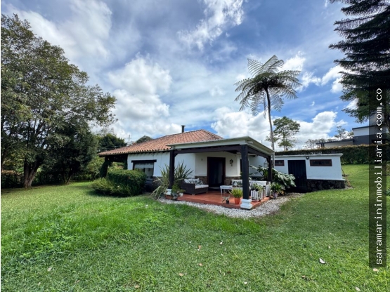 Casa Campestre con diseño colonial, de un solo nivel, con techos altos y vigas en madera.